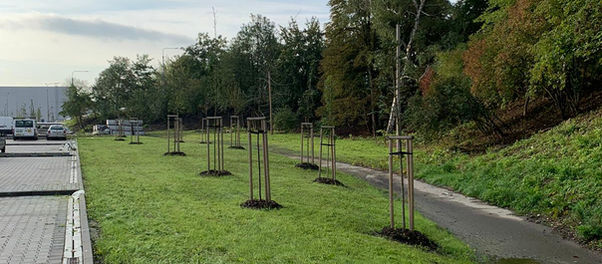 Landscape úpravy před novou budovou sídla Contera v Říčanech, v areálu Hrušov a Hustopeče.